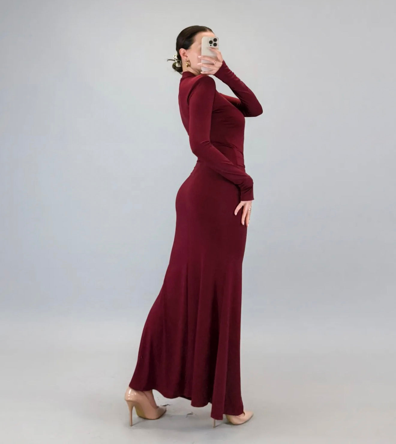Abito lungo con dettaglio arricciato al centro