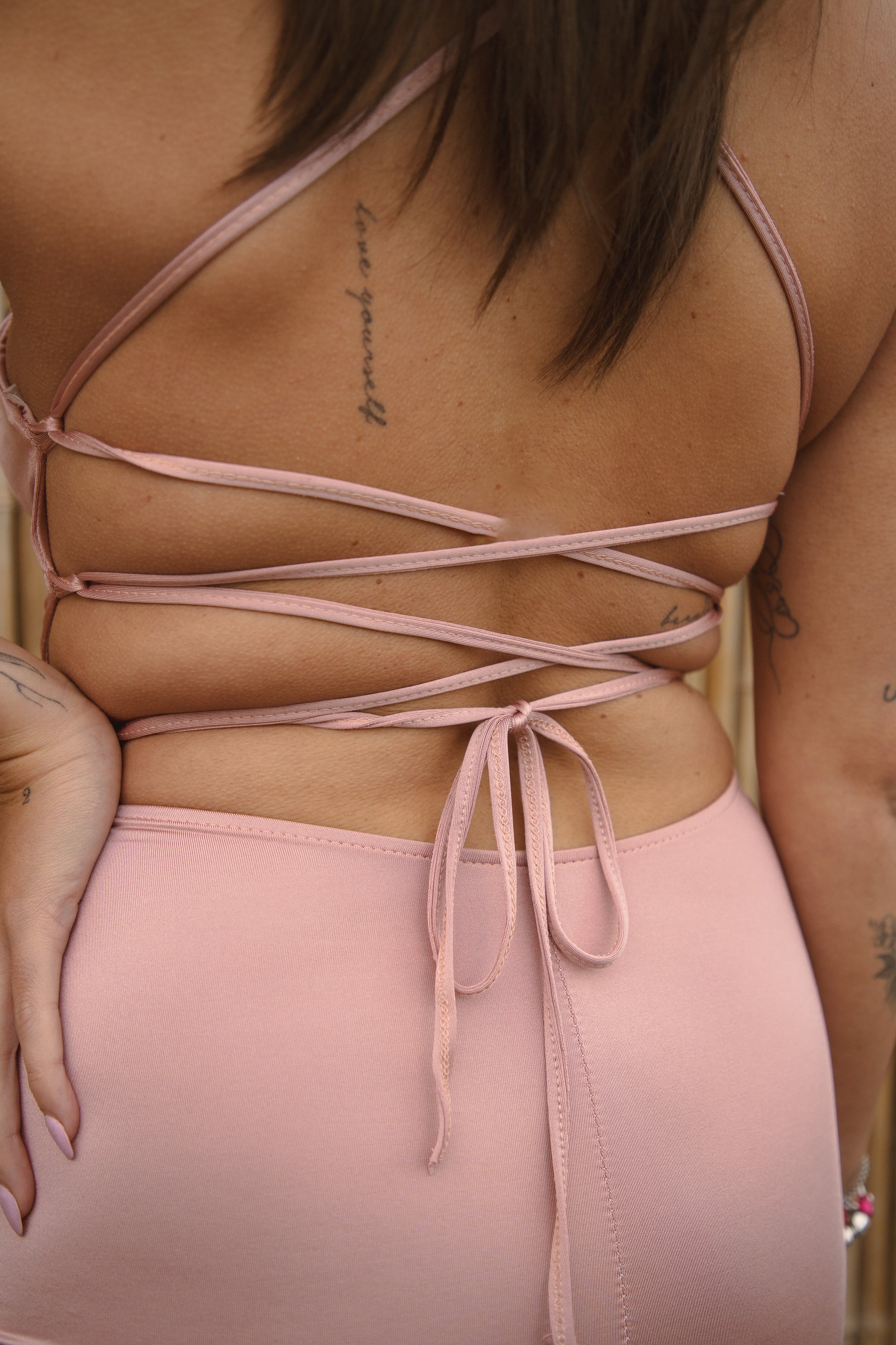 Abito lungo con spacco e intreccio sulla schiena